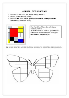 Tempo escola copiem o texto sobre Arte Abstrata de Piet Mondrian,e comece o desenho observe bem as cores que o artista usou e vamos fazer o desenho de uma releitura ,uma borboleta com forma abstrata ,ou seja figuras geométricas,e depois vamos pintar com as cores que o artista usou em seu quadro ,as cores vermelho,amarelo,preto,branco ,assim que terminar mande foto.